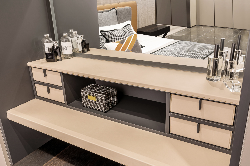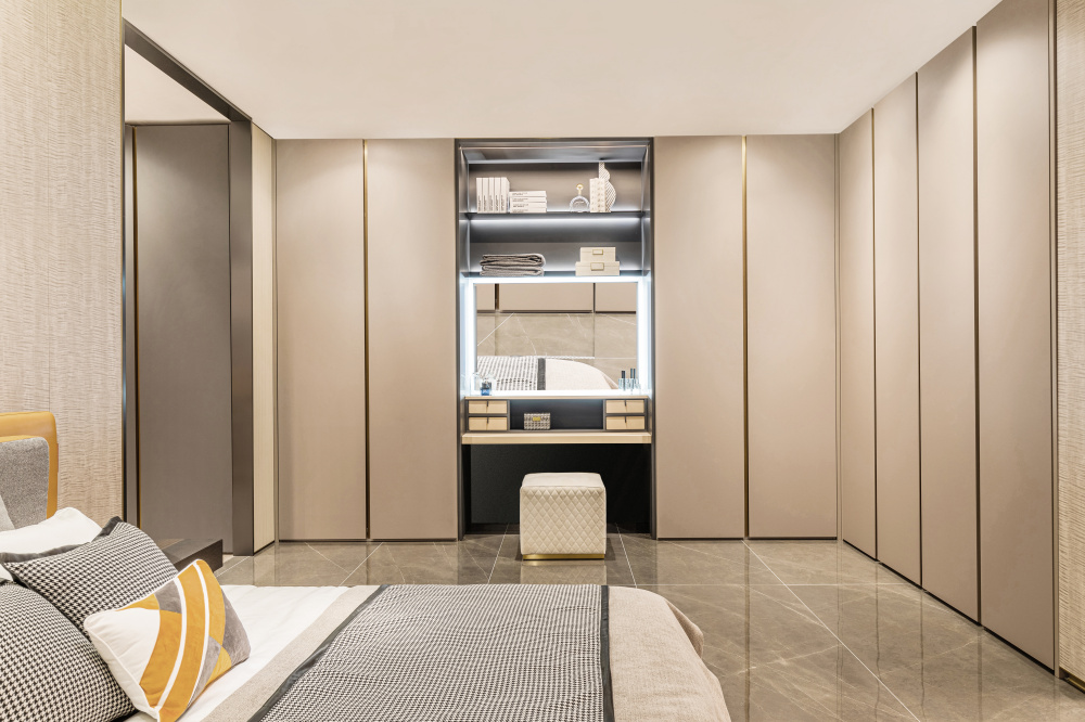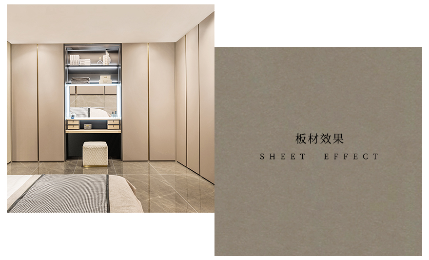 肤感漆面,色彩和质感让人着迷,不动声色中透露低调的优雅,营造出一种简约浪漫的格调。干净利落的线条设计,让整个衣柜立体感十足,呈现出低调内敛的后现代独有的风格。