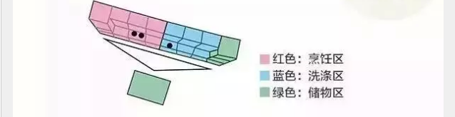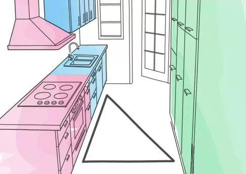 所谓的厨房黄金三角区,指的是炉灶、水槽和冰箱这三个点及其之间的假想线所组成的区域。厨房的主要功能就是在这个区域之内实施。