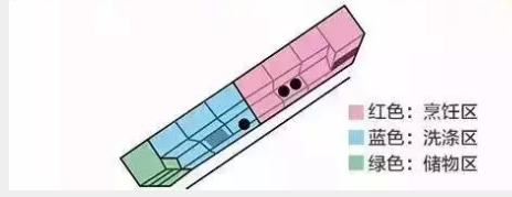 人体工程学专家研究发现,一个设计合理的厨房“工作黄金三角区”,可使平日的操作减少60%往返路程和27%的操作时间。理想情况下,工作三角三点之间的距离总长不应超过6米。不同工作点之间的理想距离是90cm,这样操作时会更高效率。