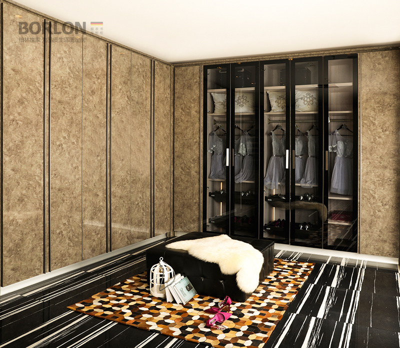 3、这款柏林世家衣柜,是将LED灯带直接镶嵌在木饰面层板的底部。