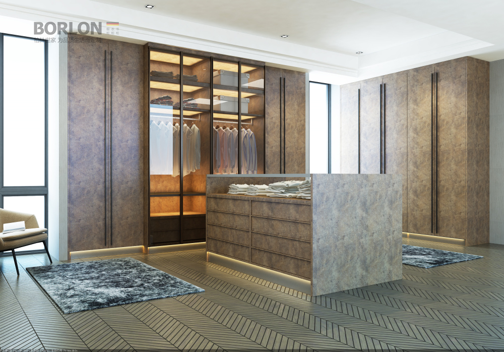 为了方便寻找衣物,同时也增加衣柜的美观性,可以在衣柜内部镶嵌LED灯带,增加照明功能。