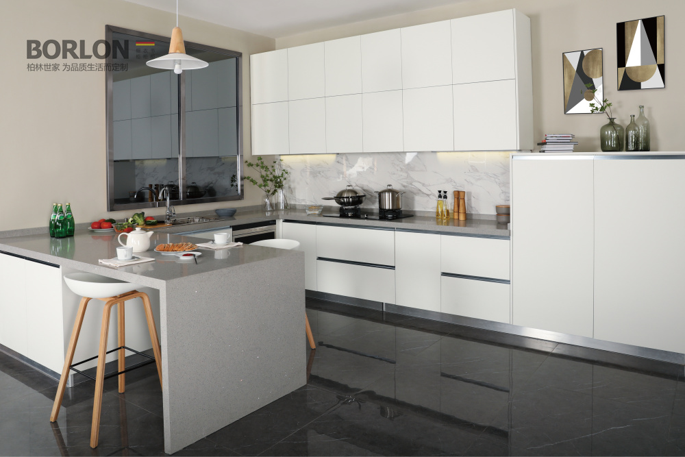 6、方便、安全原则厨房是家中唯一使用明火的区域,所以厨柜表层的防火能力是选择厨柜的重要标准。正规厂家生产的橱柜面层材料,全部使用不燃或阻燃的材料制成。