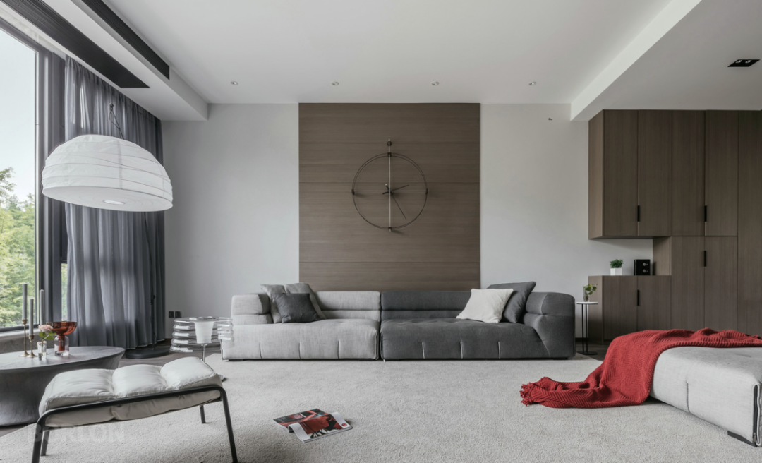 斯图加特极品哑光白打造的储物柜墙,隐形门式设计,既可以作为电视背景墙,也可以用作收纳空间。底端镂空,加装LED灯带和镜面构造,柜体轻盈,没有丝毫累赘感。再加上富有纹理的浅灰色布艺沙发,整个空间摒弃一切繁杂多余的装饰,通过时尚的设计,打破了简约的沉闷,又无奢华的浓重,在颜值和实用之间保持了平衡,真正做到了简而不凡。