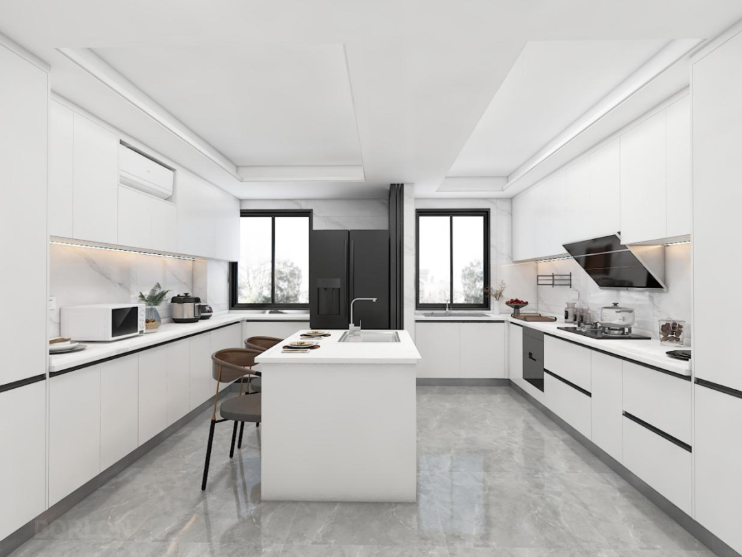 家,既要有诗和远方,也要有柴米油盐的生活气,U型结构的斯蒂芬尼帝王白橱柜采用中西结合的设计模式,添加了中岛,与橱柜的布局合理,相得益彰。嵌入式家电设计,空间更加通透、宽敞。