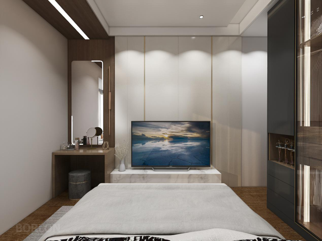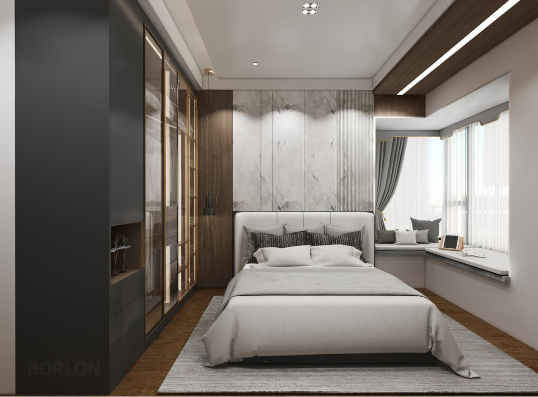 主卧的空间以白色为主基调,整体空间通透明亮。搭配FINSA(芬萨)科技银梨衣柜,简洁却又不失高雅,为卧室这一方私人的空间保留了更多的舒适与自由,展现出主人不凡的生活品味。