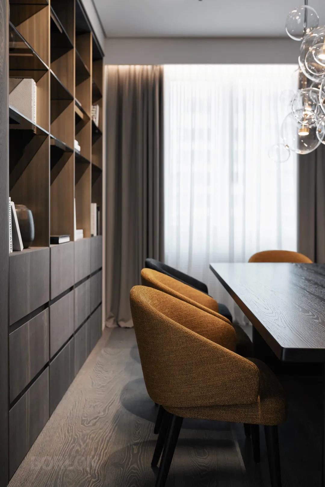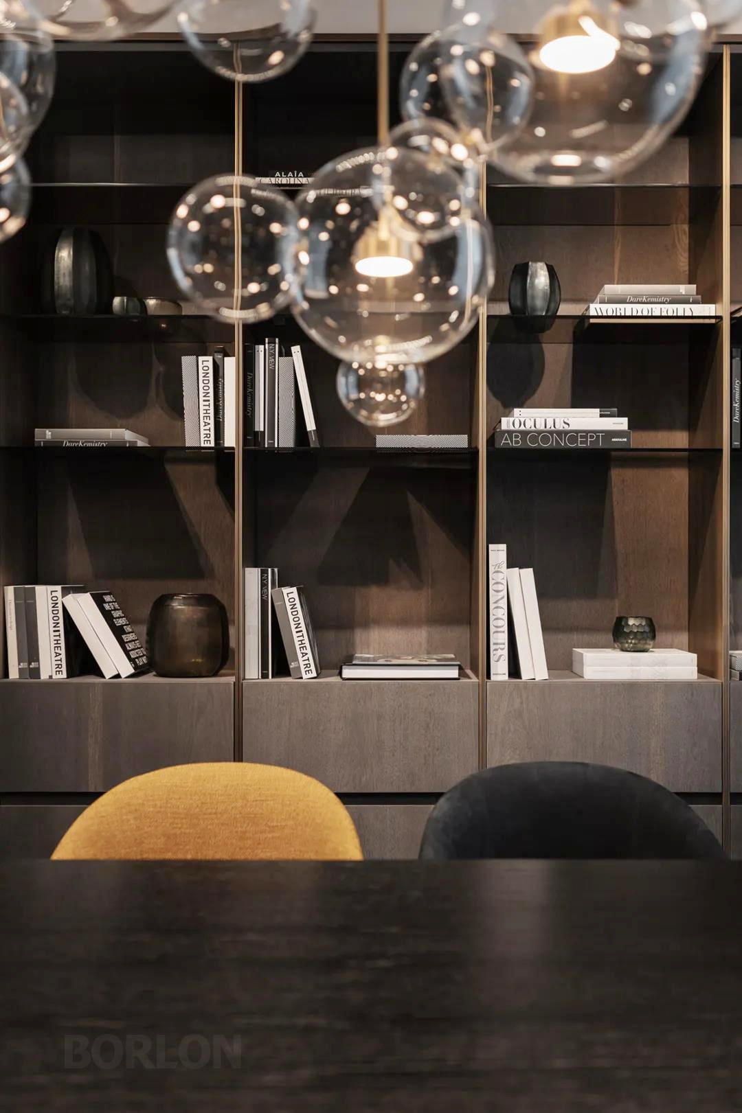 休闲区的设计是时尚与质感的融合,芬萨(FINSA)银丝黑檀柜子的设计,营造了视觉上的层次感,开阔的空间将储物与留空的比例把握的恰到好处,无论是直接摆放书本,还是一些装饰摆件,都有足够的空间,整体的视觉感错落有致,美观大方。