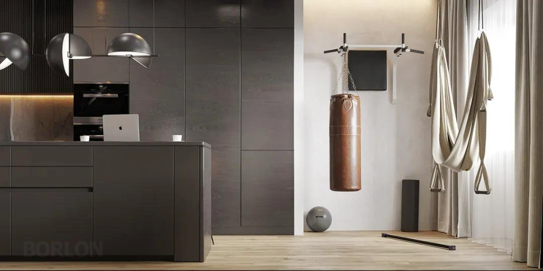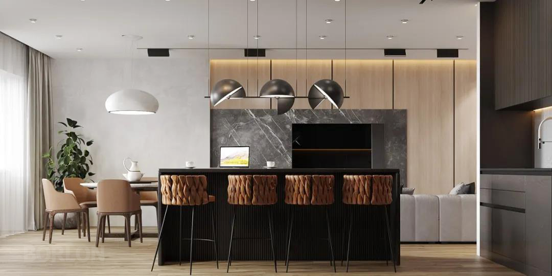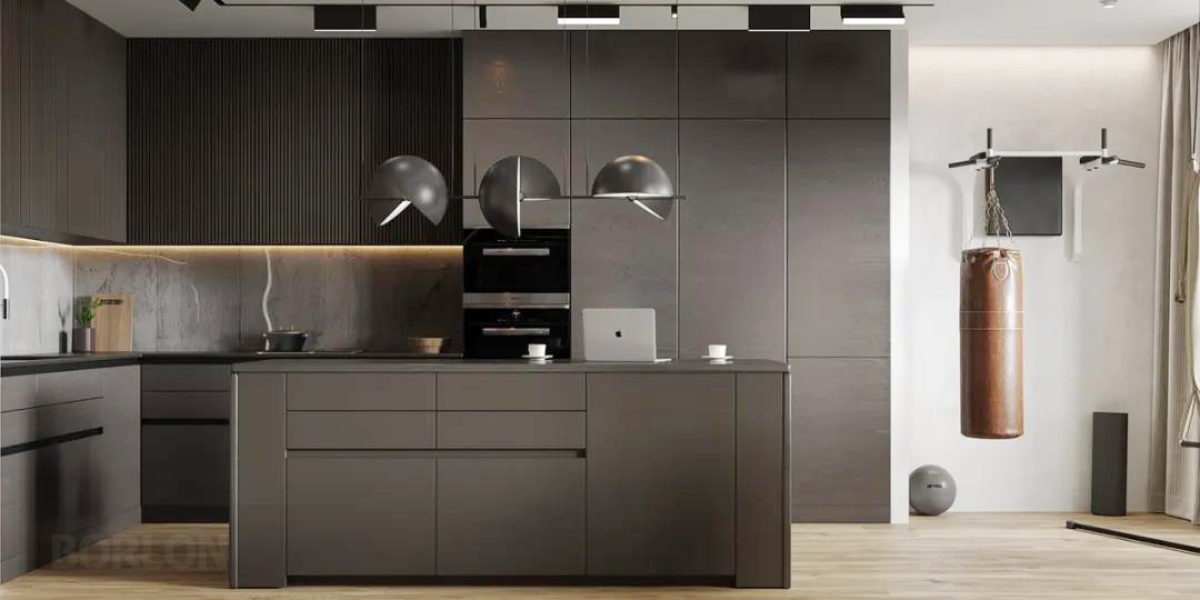 调性也营造了一个舒适理想的生活空间,让厨房充满现代的时尚气息。