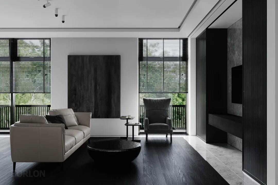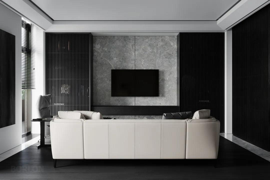 在现代简约风格的空间里注入时尚,每一个装饰、材质、开放式的空间结构都能吸引我们的目光,以黑白为主色调的客厅空间,深与浅的交织,在现代空间中形成一种赏心悦目的细致格调,传递了一种高贵典雅的时尚气息。