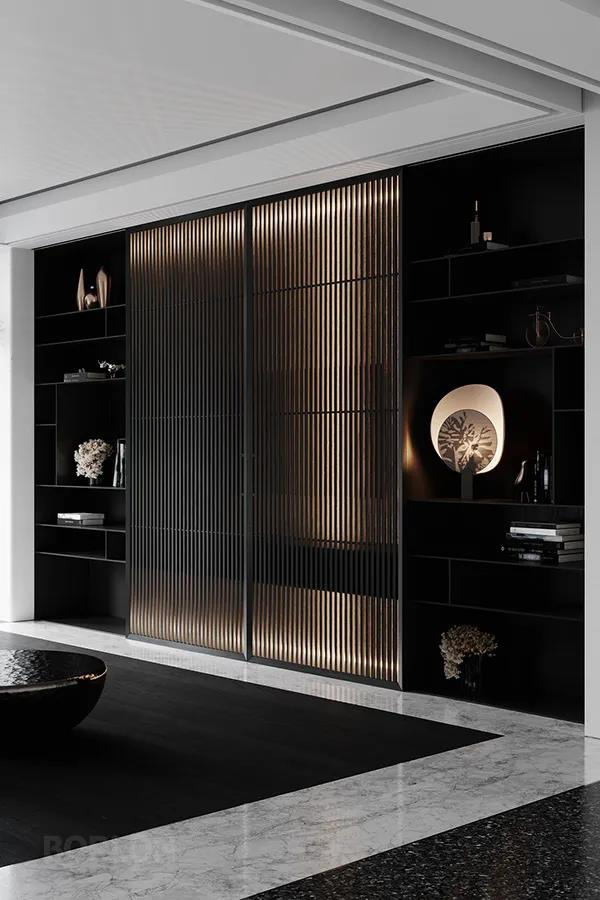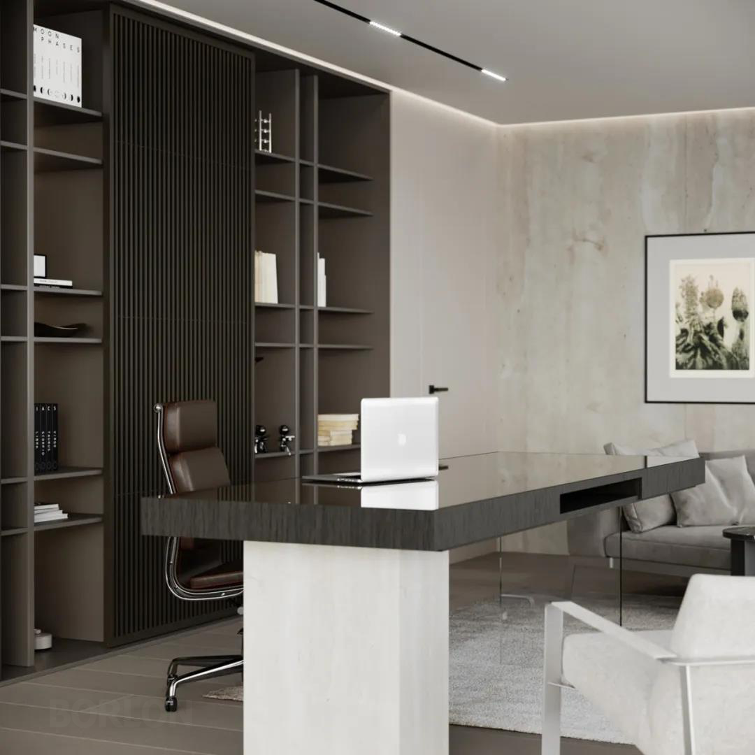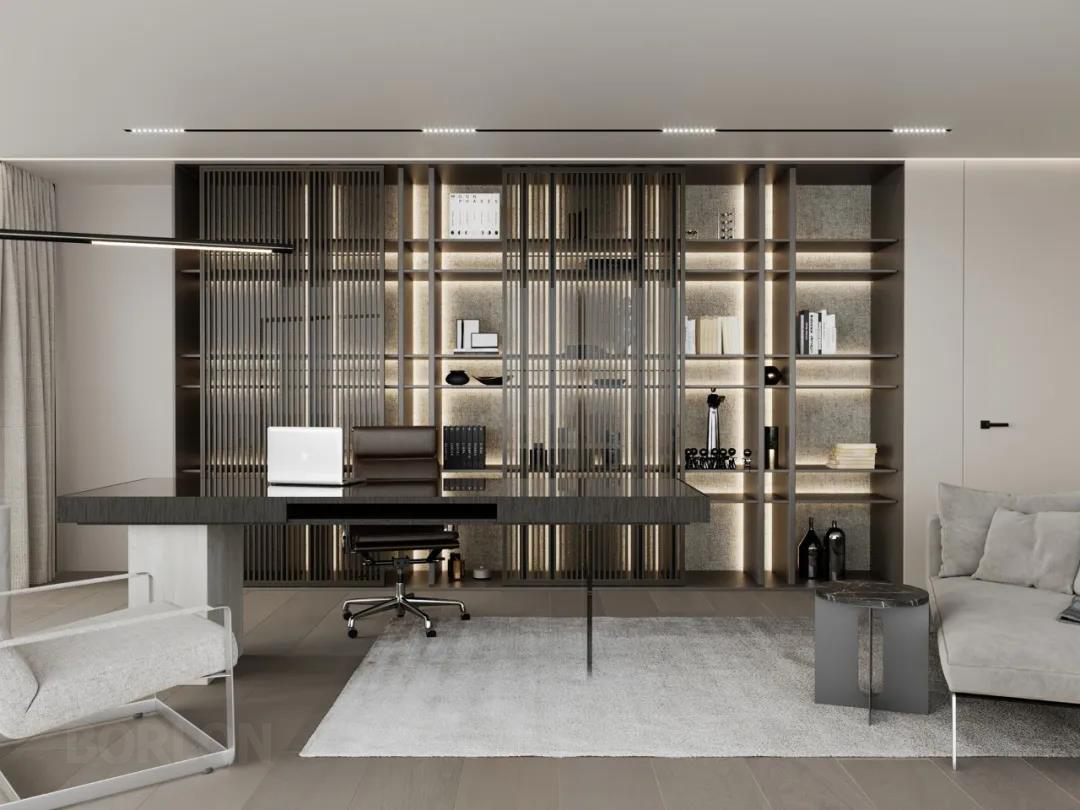 书房是一个人精神世界的体现,占据整面墙的书柜设计,不仅使得空间的布局更统一,而且拉伸了视觉感官,让整个书房的空间显得更加干净利落。