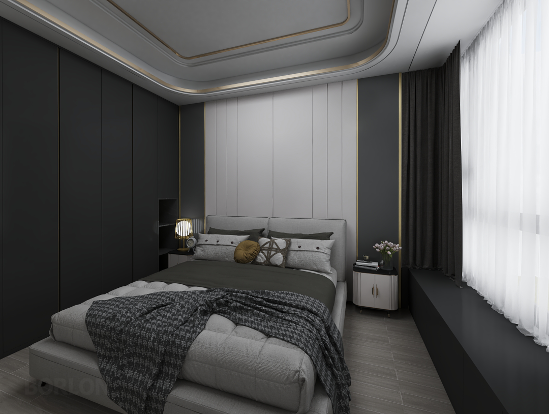 卧室作为私人的休息区域,以简洁舒适作为核心。饰面采用沉稳的配色方案,清浅的色调,让人能最大限度的放松心情,卸下满身的疲惫。