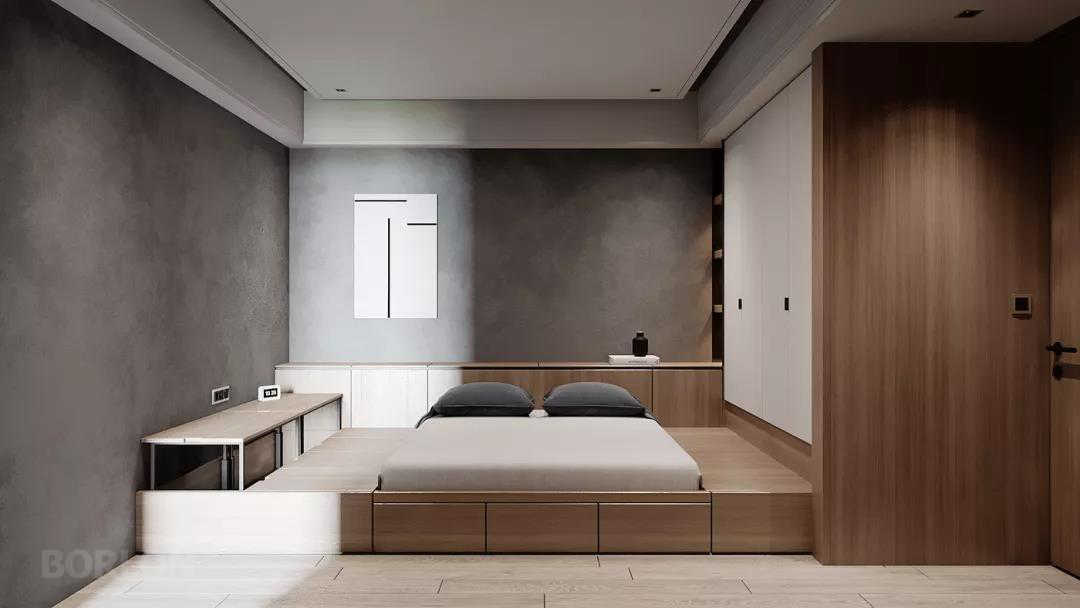 卧室空间的设计,讲究私密性与舒适感,简约的设计魅力带着质朴淡雅的气质。在白色与木色的色调之中保持着柔和的理性,以其优雅、唯美的姿态,带来平静而又富有气韵的视觉观感。