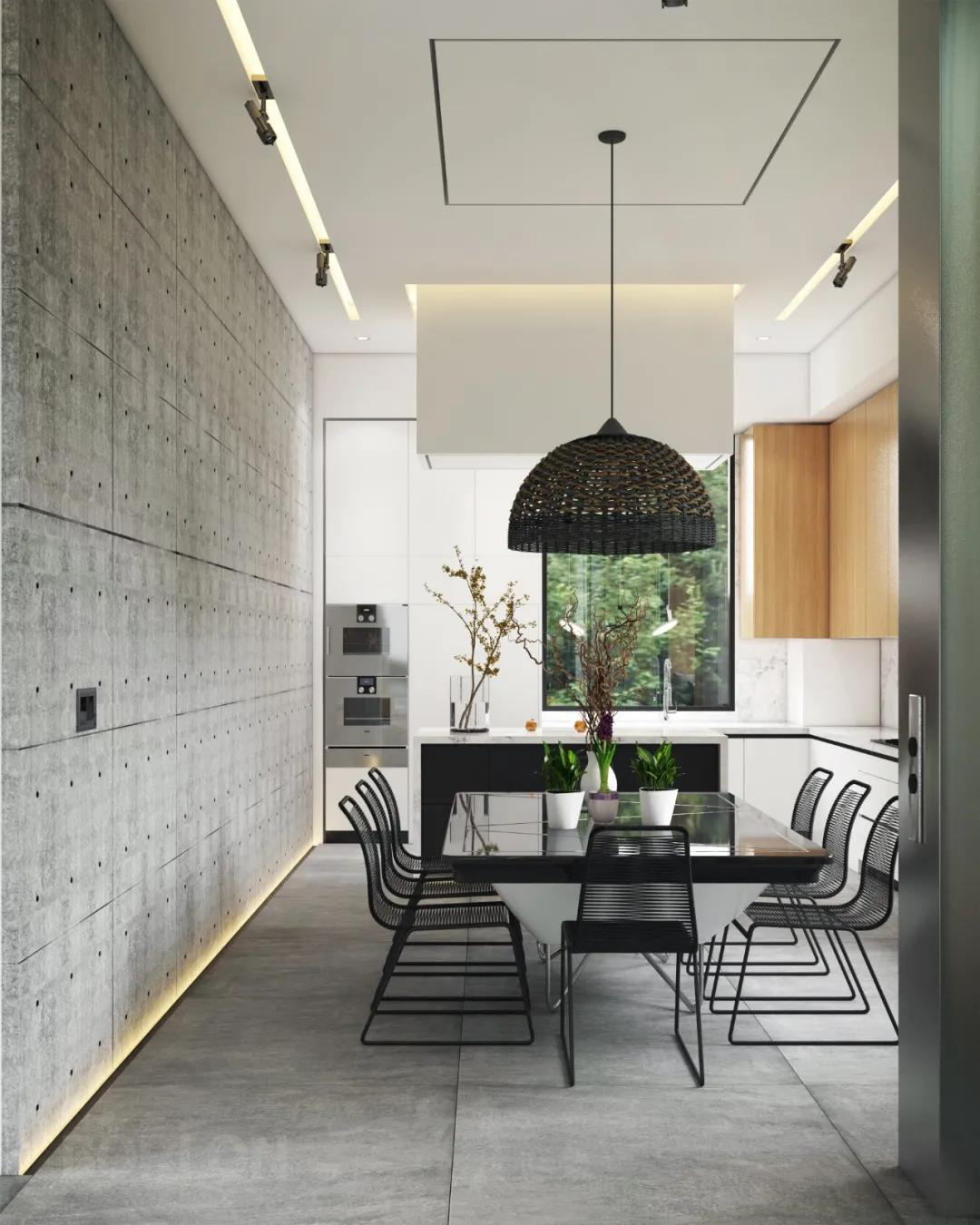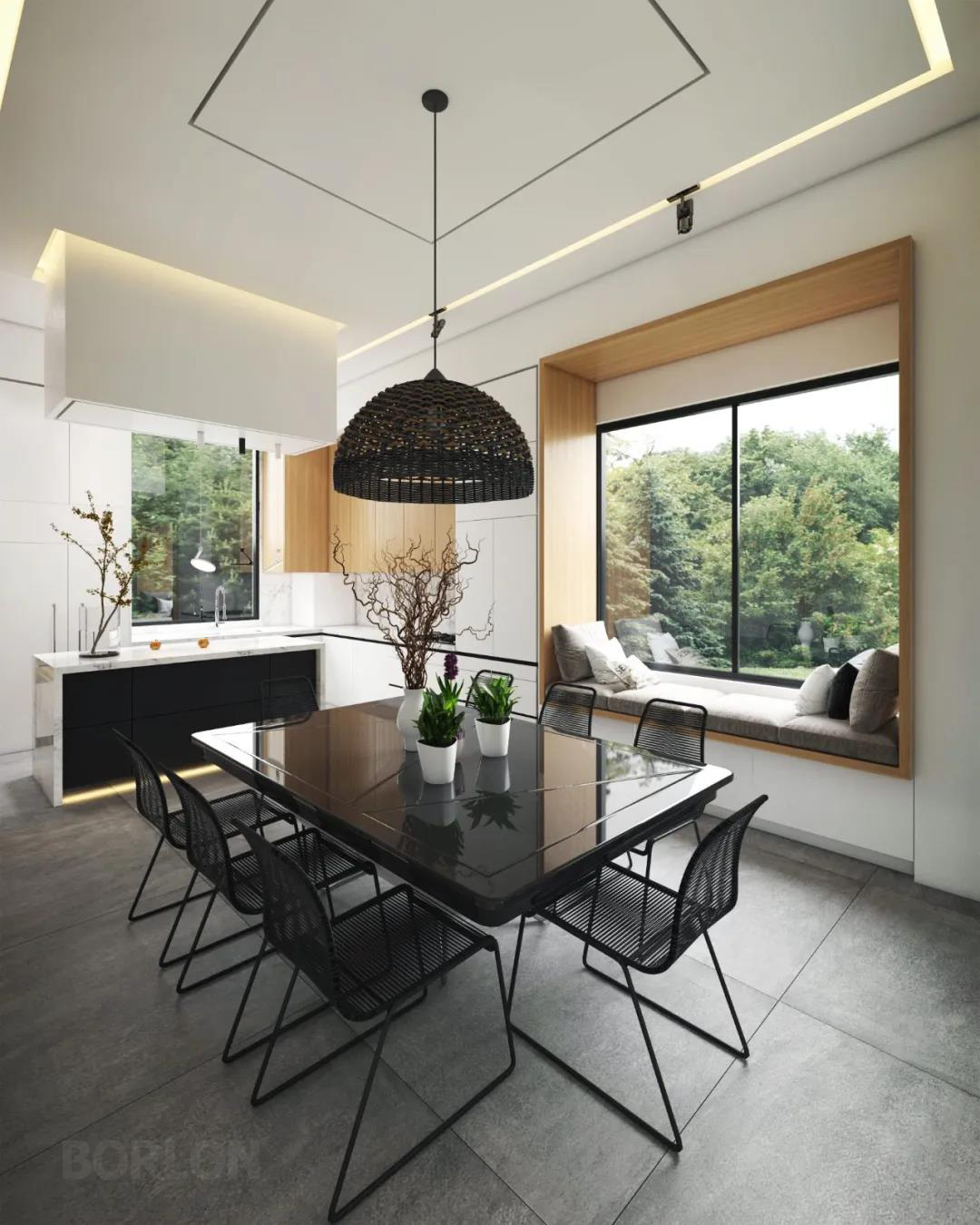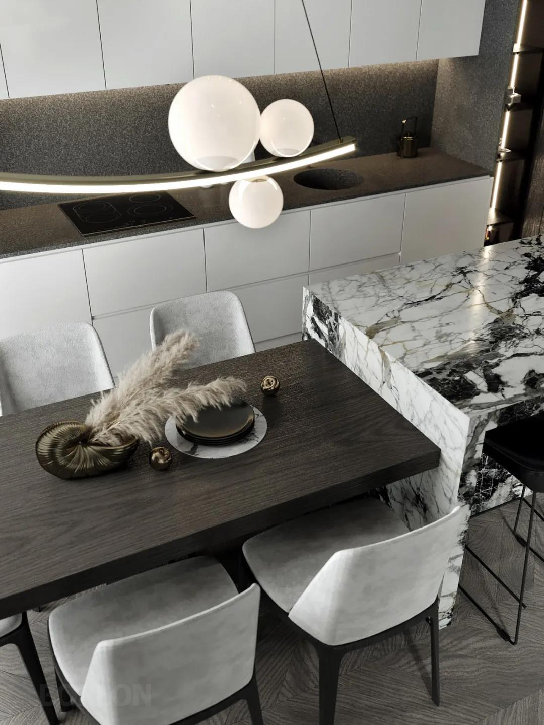 全开放式的设计,让空间的每个面积都得到了有效的利用,餐桌与中岛台一体,功能性得到最大的发挥。