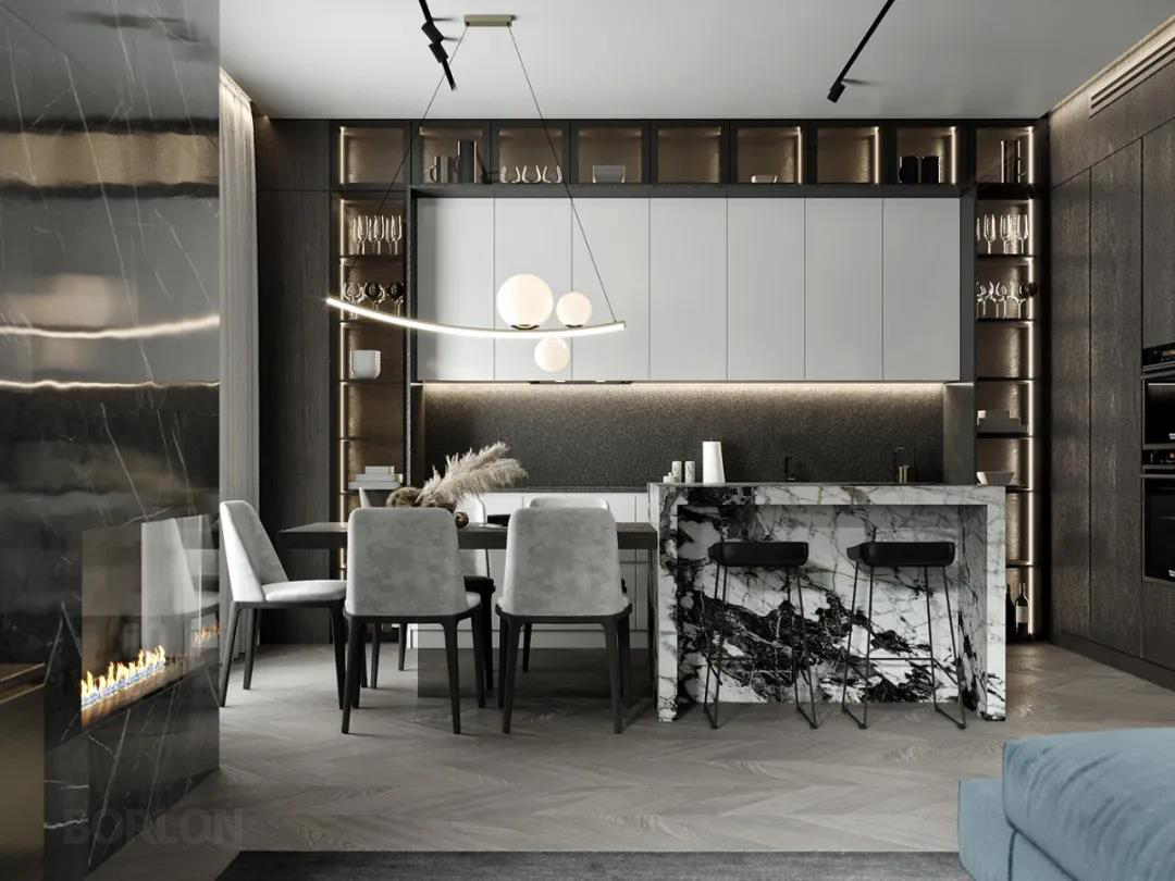 在满足功能需要的前提下,将空间、人及物进行合理精致的组合,用最精练的笔触,描绘出最丰富动人的空间效果,传达出了一种充满“精英感”的生活态度。