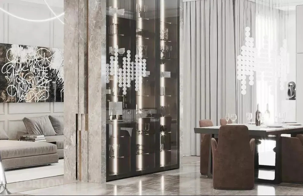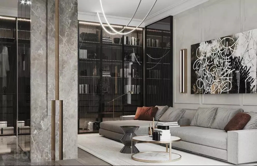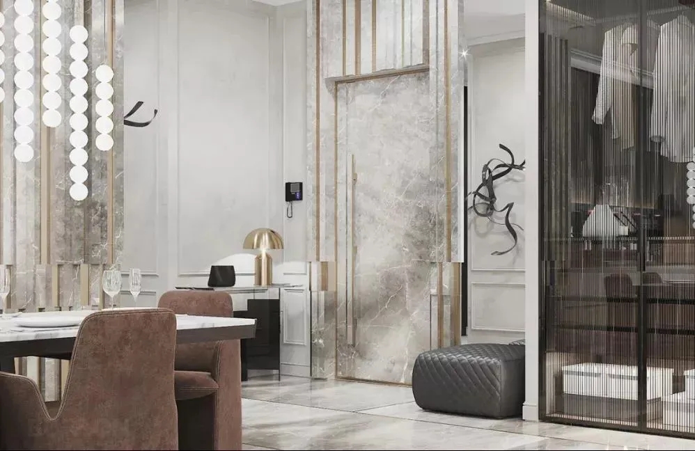自带天然纹理的大理石材质与灯光元素的组合,赋予空间生动的魅力,精致的气韵在此间静谧的生长,更富艺术气息。