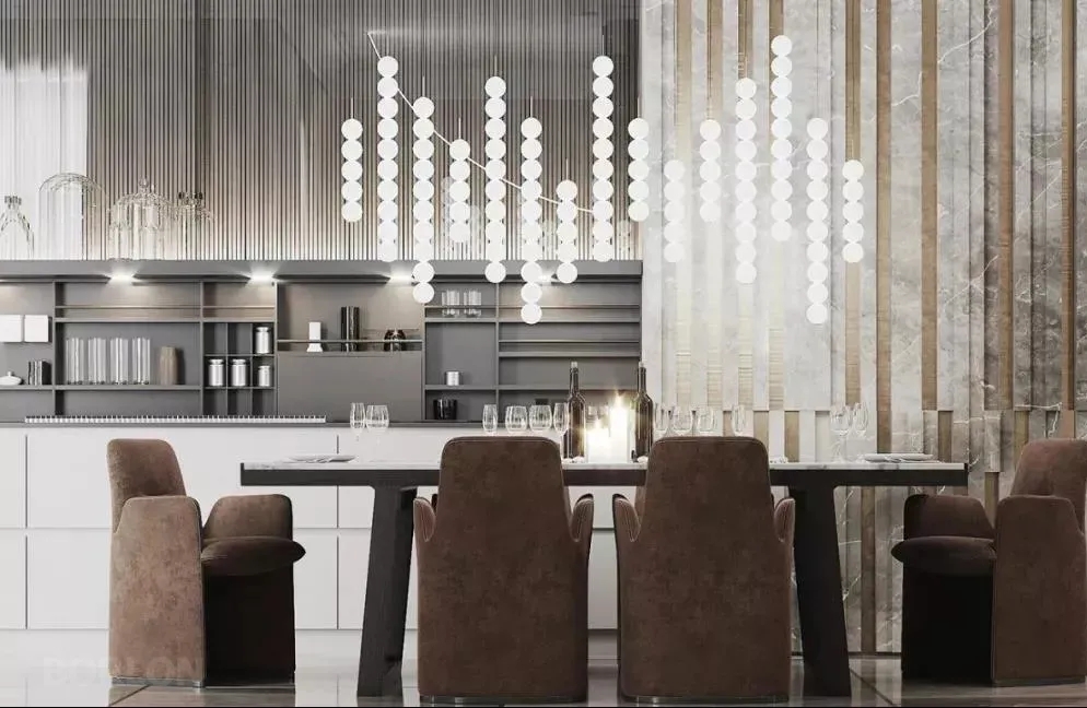华丽的玻璃吊灯, 为整个餐厅区域增添了一抹雅致的风情,精巧迷人。
