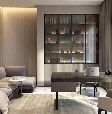 书房作为一个相对私密不被打扰的场所,浅灰色的装饰,营造了一个沉静的空间氛围。