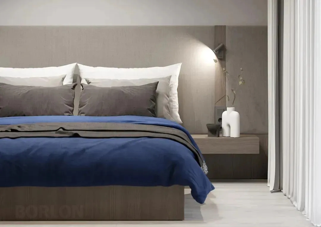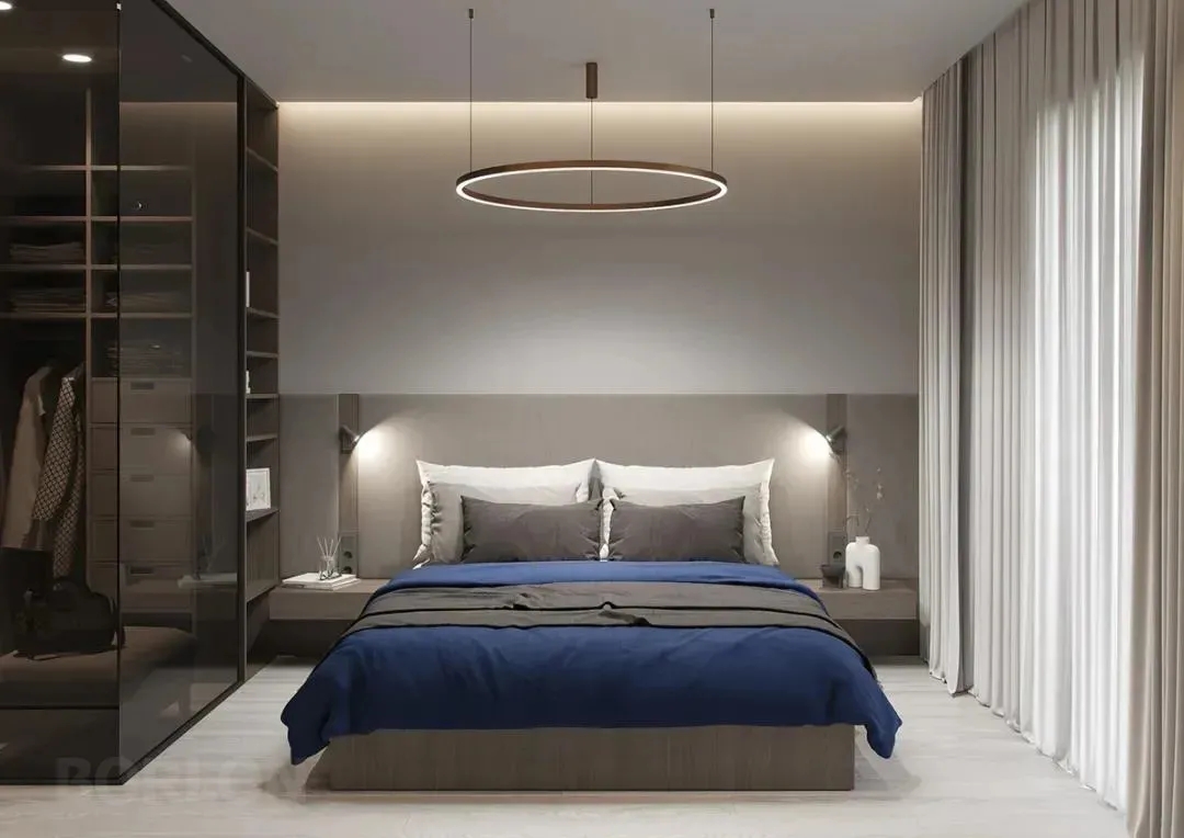 卧室延续了整体空间的简约质感,光线充足,