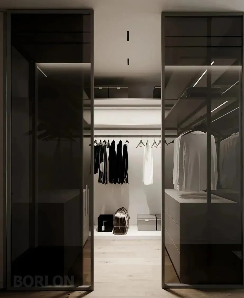 一侧的小型步入式衣帽间,