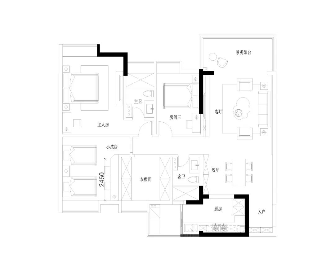 从整个空间布局来看,作为80后屋主更多注重家的温馨和舒适度,希望自己儿女的房间有玩具柜,书桌等供她玩耍学习,同时多增设一个房间为后期能够满足变成二胎小宝的房间。