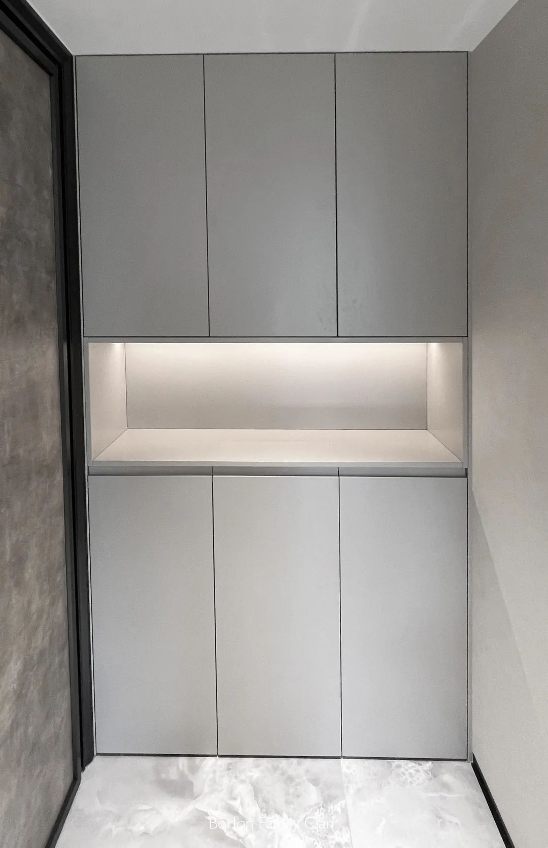 玄关的鞋柜高耸直上,直达到顶。