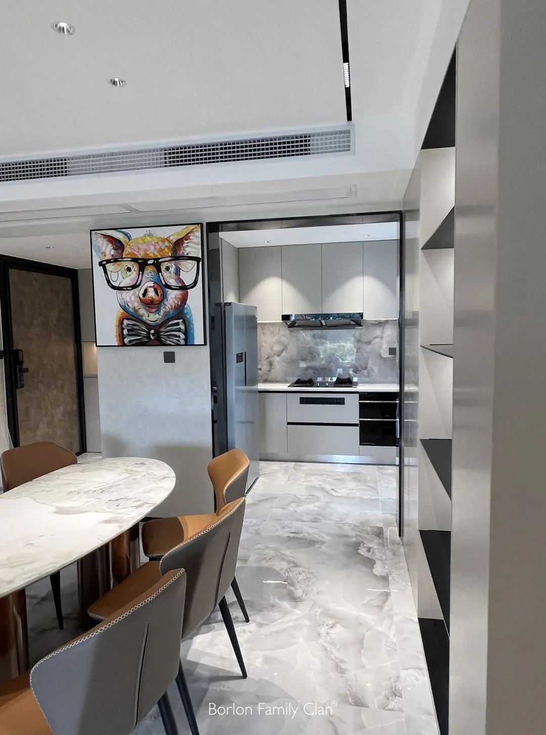 因此,本项目开展时,深入挖掘屋主的需求,图纸上每个空间的规划,都深入考究,一进门,就可以看到开阔的客厅,让厨房和餐厅形成联动,赋予房子更多的功能。