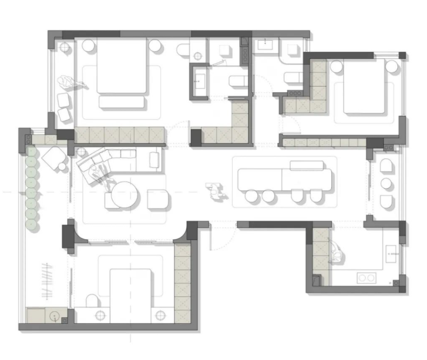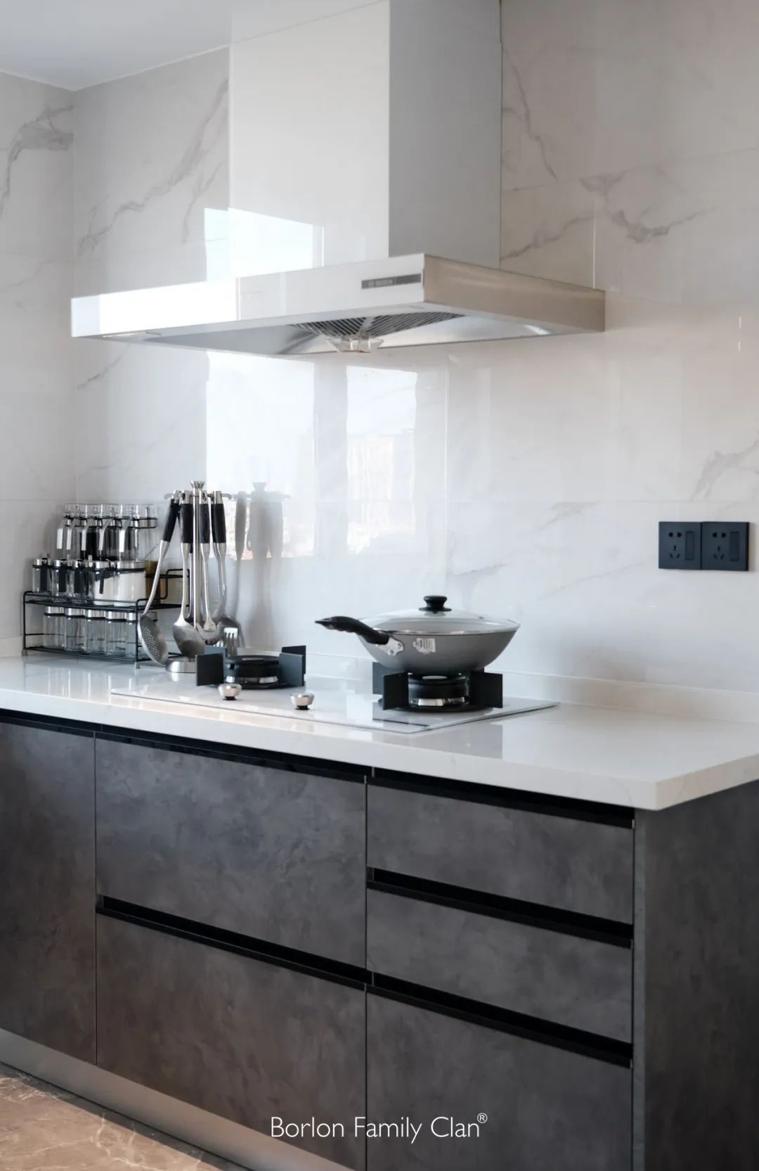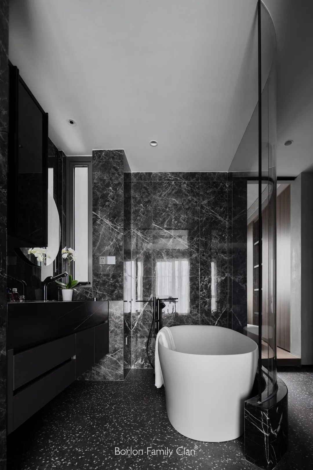 深灰充满高级感的沙发搭配曼妙肌理的石材茶几,