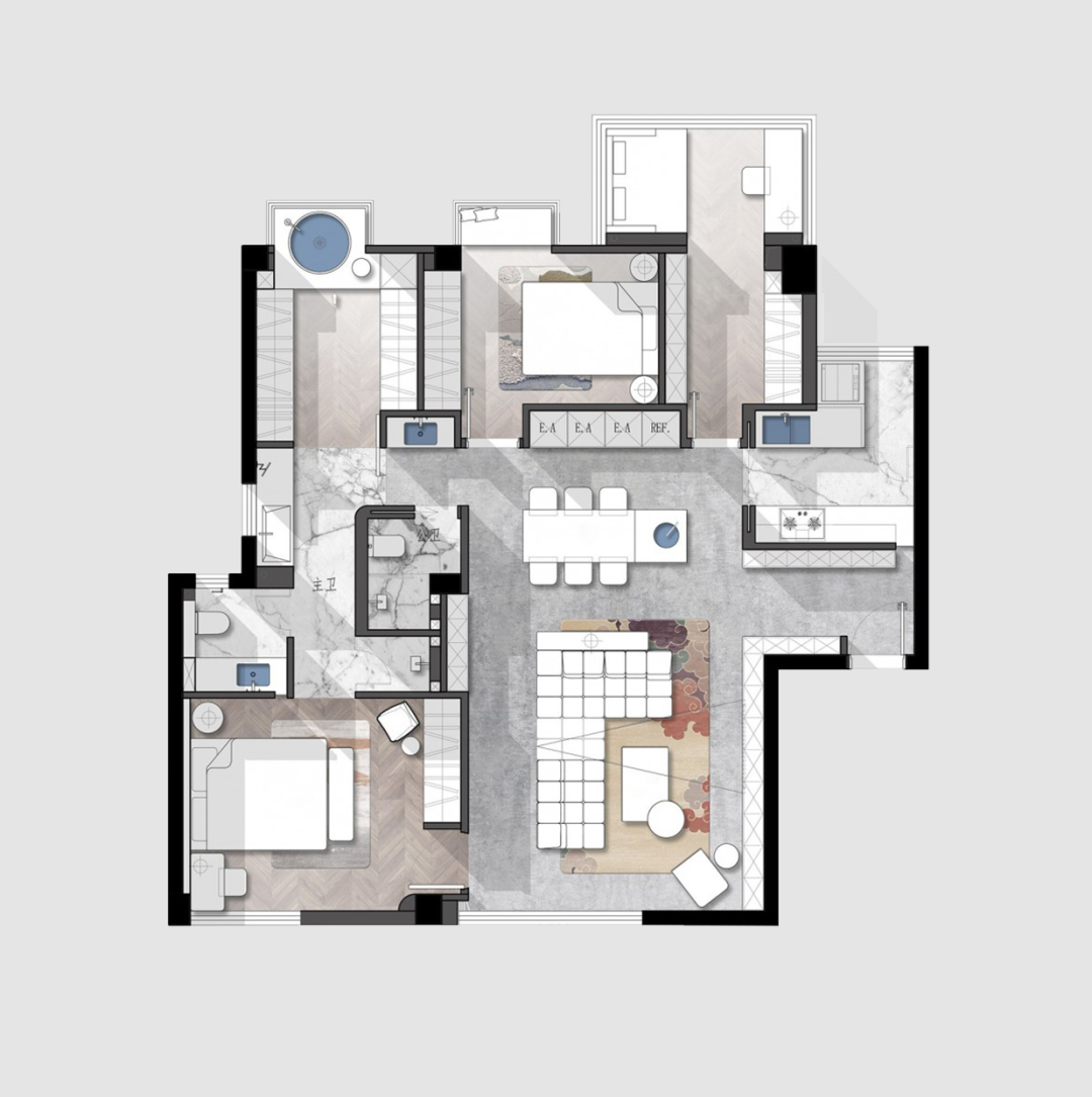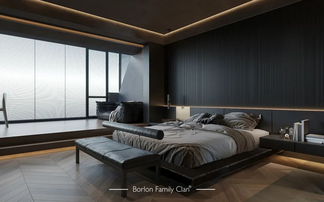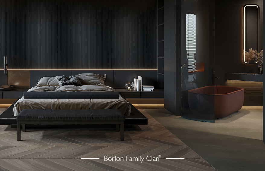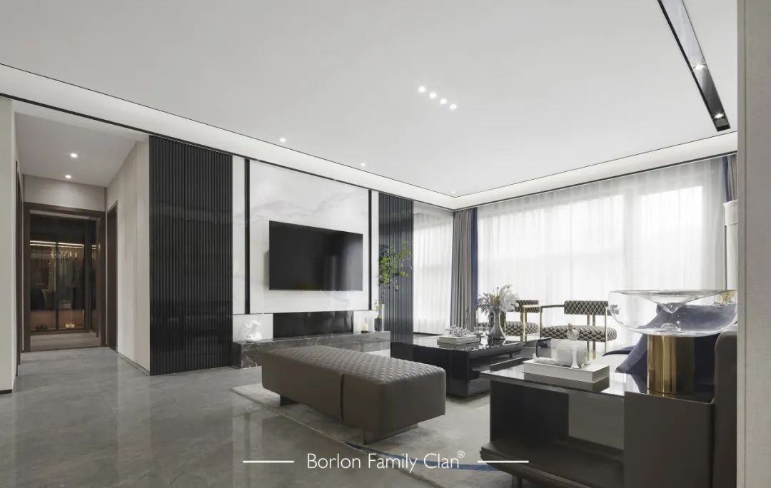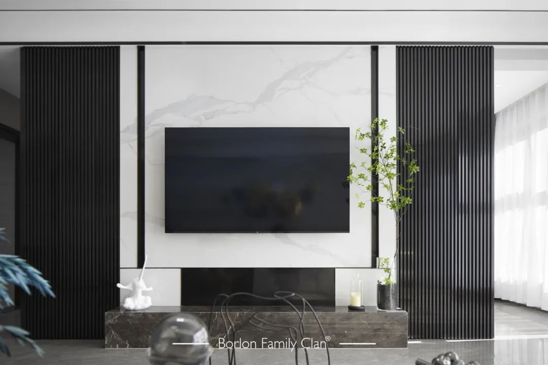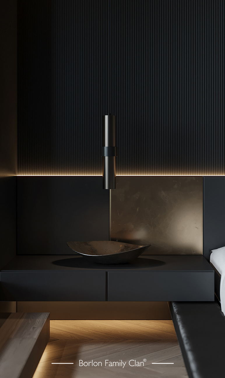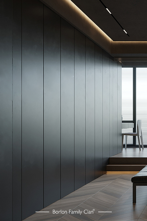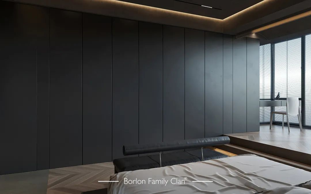 斯蒂兰卡石墨黑的色泽与墙面纹理天然有机,